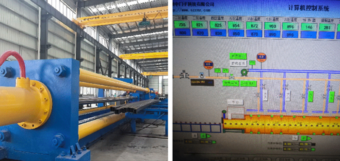 益格熱處理線采用目前冷拔行業最先進的輥底式連續爐,溫差可控制在正負7.5C以內。冷拔后的鋼管整體熱處理,可回火、退火、正火、調質。確保通身性能均勻、穩定,具有良好的綜合性能,很高的耐疲勞壽命。